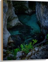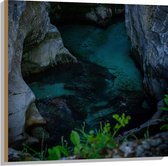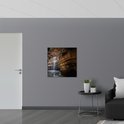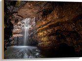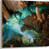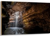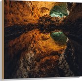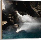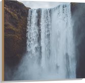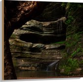 WallClassics - Hout - Waterval in een Grot - 80x80 cm - 12 mm dik - Foto op Hout (Met Ophangsysteem)