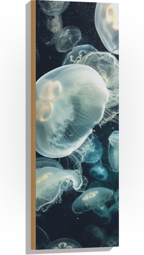 WallClassics - Hout - Zee van Kwallen in de Zee - 30x90 cm - 9 mm dik - Foto op Hout (Met Ophangsysteem)