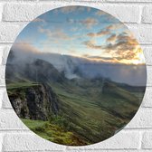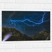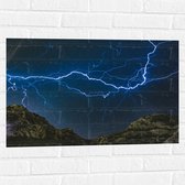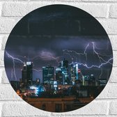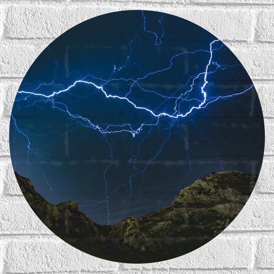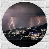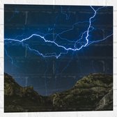 WallClassics - Muursticker Cirkel - Bliksem en Onweer in de Bergen - 50x50 cm Foto op Muursticker