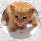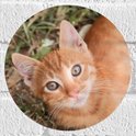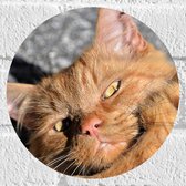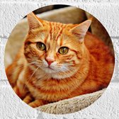 WallClassics - Muursticker Cirkel - Lieve Oranje Kater - 20x20 cm Foto op Muursticker