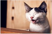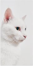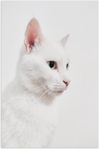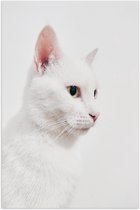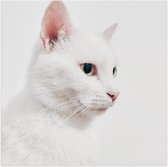 WallClassics - Poster Glanzend – Witte Kat op Witte Achtergrond - 50x50 cm Foto op Posterpapier met Glanzende Afwerking