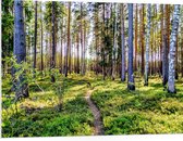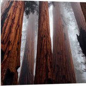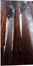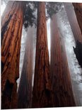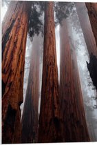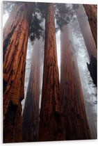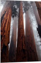 WallClassics - PVC Schuimplaat- Hele Hoge Bomen in Mistig Bos - 75x100 cm Foto op PVC Schuimplaat
