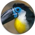 WallClassics - PVC Schuimplaat Muurcirkel - Blauwe Toekan - 60x60 cm Foto op Muurcirkel (met ophangsysteem)