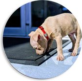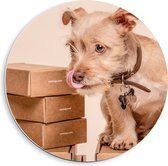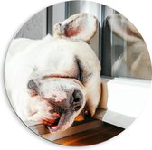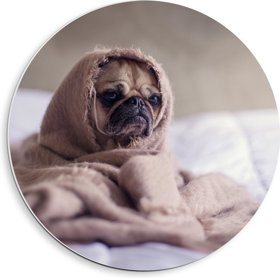 WallClassics - PVC Schuimplaat Muurcirkel - Schattig Hondje onder de Deken - 40x40 cm Foto op Muurcirkel (met ophangsysteem)