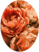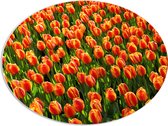 WallClassics - PVC Schuimplaat Ovaal - Close-Up Oranje Tulpen - 96x72 cm Foto op Ovaal (Met Ophangsysteem)