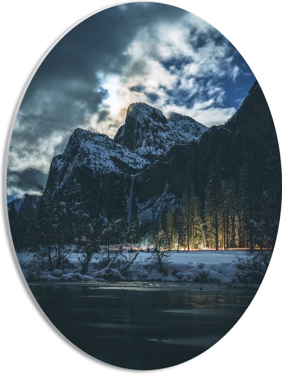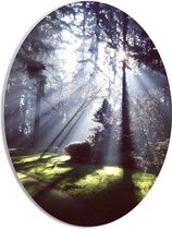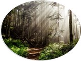 PVC Schuimplaat Ovaal - Lichten tussen de Bomen door - 30x40 cm Foto op Ovaal (Met Ophangsysteem)