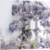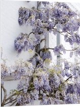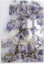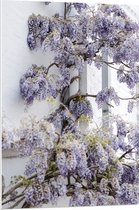 WallClassics - PVC Schuimplaat- Wit met Paarse Bloemen Plant - 60x90 cm Foto op PVC Schuimplaat
