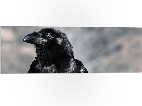 WallClassics - PVC Schuimplaat- Zwarte Raaf van Dichtbij - 90x30 cm Foto op PVC Schuimplaat