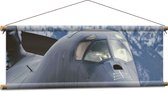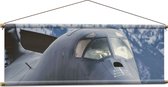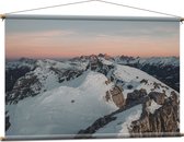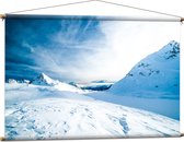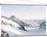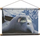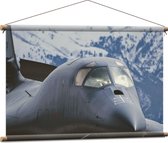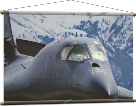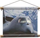 WallClassics - Textielposter - Vooraanzicht van Straaljager Vliegend bij Sneeuwbergen - 120x80 cm Foto op Textiel