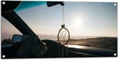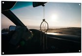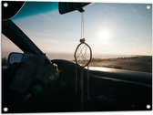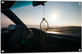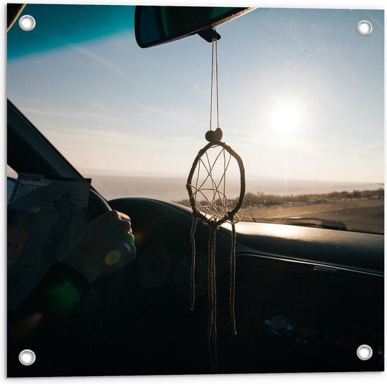 Tuinposter – Dromenvanger aan Autospiegel - 50x50 cm Foto op Tuinposter (wanddecoratie voor buiten en binnen)
