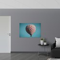 WallClassics - Vlag - Blauw met Roze Geblokte Luchtballon - 120x80 cm Foto op Polyester Vlag