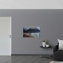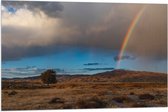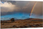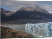 WallClassics - Vlag - Regenboog in Landschap met IJskappen - 90x60 cm Foto op Polyester Vlag