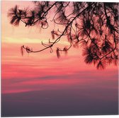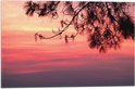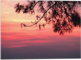 WallClassics - Vlag - Silhouet van Takken tegen Roze Lucht - 60x40 cm Foto op Polyester Vlag