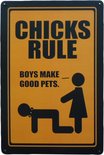 Wandbord – Chicks rule - Metalen wandbord - Wandborden - Retro - Mancave - Metal sign - Teskt bord - Humor - Decoratie - Metalen borden - Wand Decoratie - Metalen bord - 20 x 30 cm - Cave & Garden