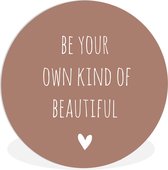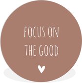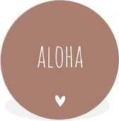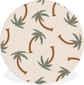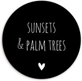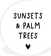 Wandcirkel - Muurcirkel Binnen - Engelse quote Sunset & palm trees met een hartje bruine achtergrond - ⌀ 150 cm - Wanddecoratie - Ronde Schilderijen