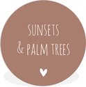 Muurcirkel binnen - Engelse quote Sunset & palm trees met een hartje tegen een bruine achtergrond - Wanddecoratie rond