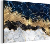 Wanddecoratie Metaal - Aluminium Schilderij Industrieel - Marmer - Wit - Goud - Luxe - 180x120 cm - Dibond - Foto op aluminium - Industriële muurdecoratie - Voor de woonkamer/slaapkamer