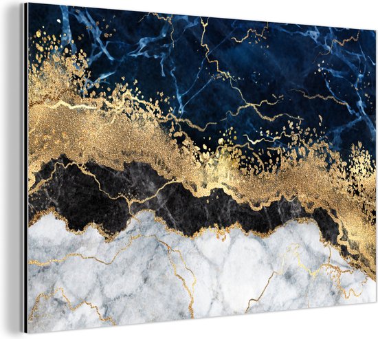 Metalen wanddecoratie - Marmer - Wit - Goud - Luxe - Industrieel