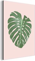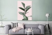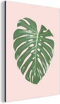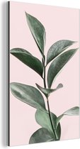 Wanddecoratie Metaal - Aluminium Schilderij Industrieel - Plant - Groen - Roze - Natuur - 120x160 cm - Dibond - Foto op aluminium - Industriële muurdecoratie - Voor de woonkamer/slaapkamer