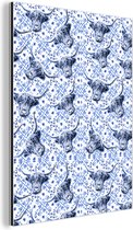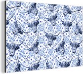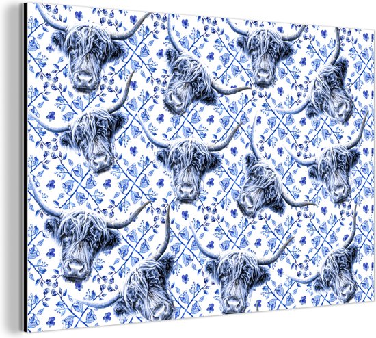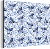 Wanddecoratie Metaal - Aluminium Schilderij Industrieel - Schotse hooglander - Delfts blauw - Patroon - 150x100 cm - Dibond - Foto op aluminium - Industriële muurdecoratie - Voor de woonkamer/slaapkamer