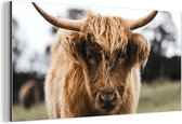 Metalen wanddecoratie - Schotse Hooglander - Koe - Gras - Dieren - Natuur - Industrieel