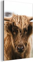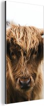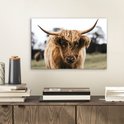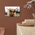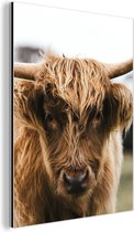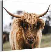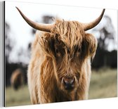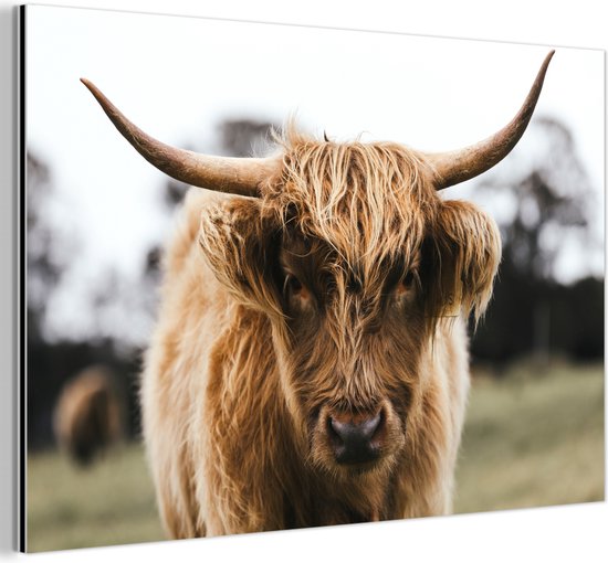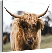 Aluminium schilderij 30x20 cm - Wanddecoratie metaal - Schotse Hooglander - Koe - Gras - Dieren - Natuur - Metalen muurdecoratie woonkamer - Decoratie industrieel - Foto op dibond - Industriële accessoires slaapkamer