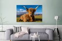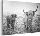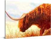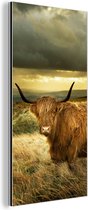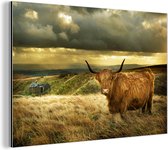 Wanddecoratie Metaal - Aluminium Schilderij Industrieel - Schotse hooglander - Licht - Natuur - 180x120 cm - Dibond - Foto op aluminium - Industriële muurdecoratie - Voor de woonkamer/slaapkamer