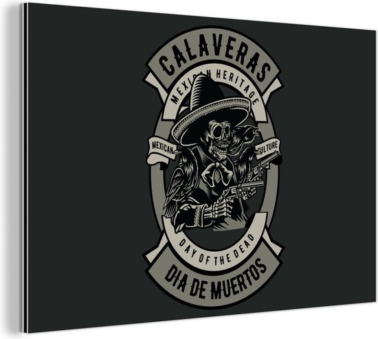 Wanddecoratie Metaal - Aluminium Schilderij Industrieel - Skelet - Pistool - Retro - 60x40 cm - Dibond - Foto op aluminium - Industriële muurdecoratie - Voor de woonkamer/slaapkamer