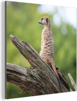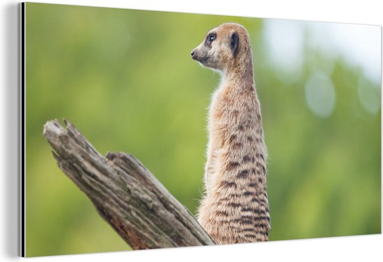 Wanddecoratie Metaal - Aluminium Schilderij Industrieel - Stokstaartje - Tak - Boom - 160x80 cm - Dibond - Foto op aluminium - Industriële muurdecoratie - Voor de woonkamer/slaapkamer