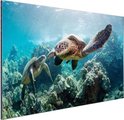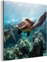 Wanddecoratie Metaal - Aluminium Schilderij Industrieel - Twee zeeschildpadden - 120x80 cm - Dibond - Foto op aluminium - Industriële muurdecoratie - Voor de woonkamer/slaapkamer
