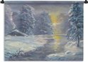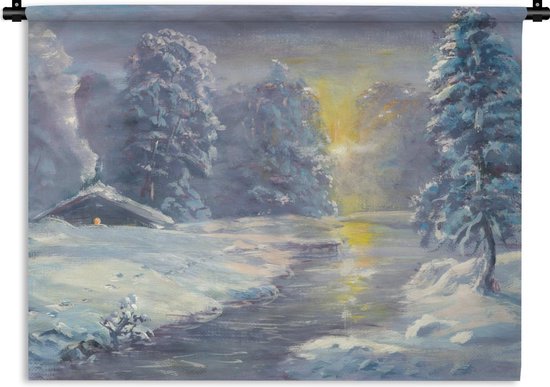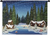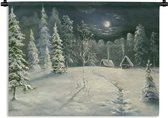 Wandkleed Bossen en bomen illustratie - Een illustratie van een winters bos Wandkleed katoen 60x45 cm - Wandtapijt met foto