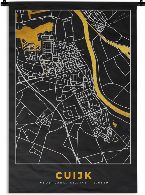 Wandkleed - Wanddoek - Cuijk - Goud - Stadskaart - Plattegrond - Kaart - Nederland - 90x135 cm - Wandtapijt