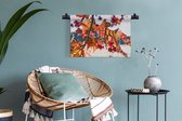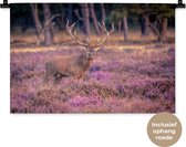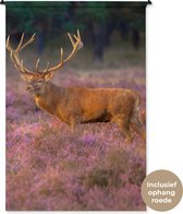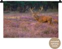 Wandkleed - Wanddoek - Hert - Nederland - Bloemen - Veluwe - 60x40 cm - Wandtapijt