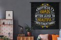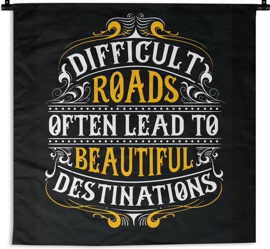 Over de afbeeldingRetro letters spellen de motiverende quote ''difficult roads often lead to beautiful destinations''.