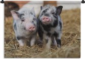 Over de afbeeldingTwee varkentjes in het hooi.