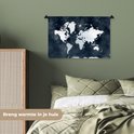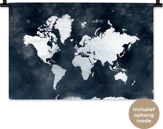 Wandkleed WereldkaartenKerst illustraties - Lichtblauwe en witte wereldkaart voor een achtergrond van donkerblauwe waterverf Wandkleed katoen 60x40 cm - Wandtapijt met foto