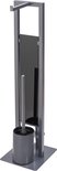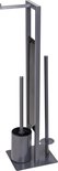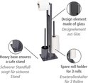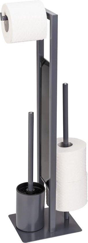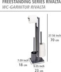- Inhoud: 1 x Rivalta toiletset van WENKO in grijs, mat gelakt staal en glazen blad, met toiletrolhouder, reserverolhouder en toiletborstelhouder inclusief toiletborstel met vervangbare borstelkop, afmetingen (B x H x D): 18 x 70 x 23,5 cm