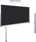 - When not in use, the side awning neatly retracts into its steel box, which protrudes no more than 50 cm from the wall. This compact design ensures that the screen remains unobtrusive, blending seamlessly with your outdoor decor when retracted.