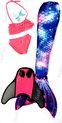 Zeemeermin staart set| Mermaid staart, Bikiniset en Monovin | Purple stars maat 130 | Staartpuntbescherming!