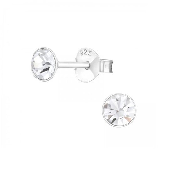 92.5 Sterling Zilveren oorknop met wit Lebowski kristal