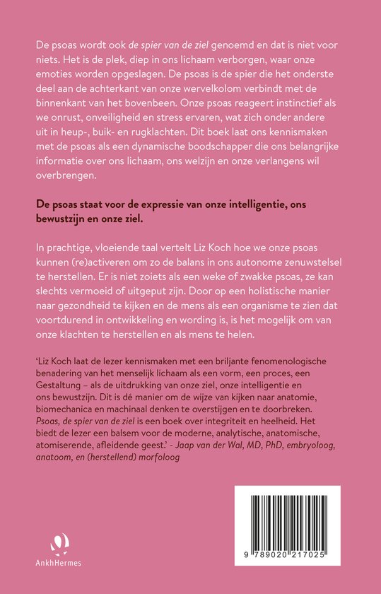 In 'Psoas de spier van de ziel, symbool voor de verbinding tussen lichaam en ziel' van Liz Koch leer je de psoas, een belangrijke spiergroep, kennen en activeren om balans in je autonome zenuwstelsel te herstellen.