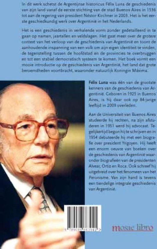 In dit werk schetst de Argentijnse historicus Félix Luna de geschiedenis van zijn land vanaf de eerste stichting van de stad Buenos Aires in 1536 tot aan de regering van president Néstor Kirchner in 2003. Het is het eerste geschiedkundige werk over Argentinië in het Nederlands.