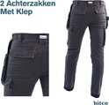 BITCO ATTERT Stretch Werkbroek Heren Grijs Zwart - waterafstotende en olieafstotende kniebeschermerzakken Verstevigd met CORDURA®