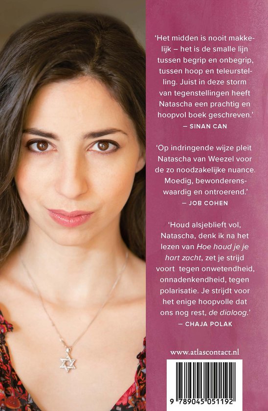 In een paar dagen heb ik het geweldig moedige boek gelezen. Natascha kiest voor de vrede, voor het luisteren naar beide partijen in de strijd tussen Israël en de Palestijnen, zoekend naar de verbinding, naar het radicale midden. Dat is niet eenvoudig in een tijd die verscheurd wordt door polarisatie, van mensen die niet meer luisteren maar hun eigen gelijk. Ben je het niet eens met hen dan ben je of een zionist (pro-Palestijnen) of een verraadster, voor de mensen die zondermeer achter het beleid van de extreem-rechtse regering Netanyahu staan. En dan nog de twijfel in je eigen hart: “Haalt het iets uit, dat je de dialoog zoekt als zelfs in Nederland mensen niet meer naar elkaar luisteren maar elkaar bij voorbaat veroordelen.” Toch is het de enige manier. Ga, door, Natascha. Duisternis kan geen duisternis verdrijven, haat geen haat. Het escaleert alleen maar. Daar is juist deze tijd het duidelijke bewijs van. En ik geloof ook dat het een opdracht is, te kiezen voor de weg van het midden. “Overwin het kwade door het goede”. En beste volgers, lees dit boek! Van harte aanbevolen!