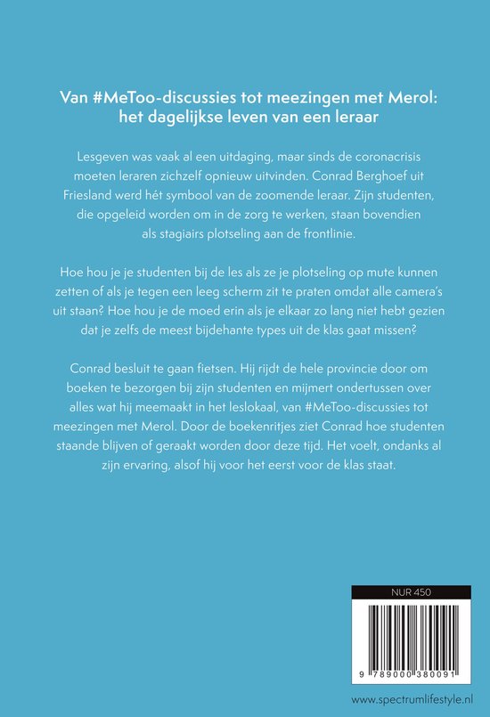 Dat leraren helden zijn, wisten we al, maar sinds het thuisonderwijs zijn het goden. Conrad Berghoef uit Friesland werd hét symbool van de zoomende leraar. In dit boek vertelt hij over het vak dat hij al 25 jaar uitoefent, over lesgeven tijdens corona en over zijn leerlingen die opgeleid worden om in de zorg te werken en als beginnende stagiairs aan de frontlinie staan tijdens de coronacrisis.