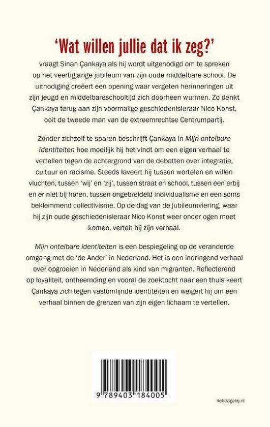 Zeer interessant boek over onze identiteiten. Hoe deze worden gevormd aan de hand van onze eigen ervaringen, maar ook hoe ons uiterlijk anderen kan bedriegen, waardoor de externe omgeving je een bepaalde identiteit oplegt. Sinan vertelt dit aan de hand van zijn eigen ervaringen met de nodige nuance. Tot slot beschrijft hij hoe ondanks dat anderen zich met jouw identiteit bemoeien, je toch eigen weg kunt vinden in het vormen van jouw (ontelbare) identiteit(en).