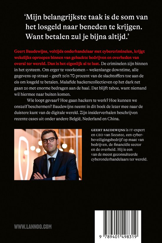 Geert Baudewijns is voltijds onderhandelaar met cybercriminelen. Wekelijks krijgt hij oproepen binnen van gehackte bedrijven en overheden van overal ter wereld. Dan is het eigenlijk al te laat. De criminelen zijn binnen in het systeem. Om erger te voorkomen - wekenlange downtime, alle gegevens op straat - geeft zo'n 70 procent van de slachtoffers toe aan de eis om losgeld te betalen. Malafide hackerscollectieven op het dark net gaan zo met enorme bedragen aan de haal. Dat blijft taboe, want niemand wil hiermee naar buiten komen.