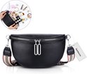 Rainbecom - Crossbodytas Dames PU Leer – 3 Vakken – Dubbele Rits - Stijlvol Schoudertas met Verstelbare en Afneembare Schouderriem – Zwart – Lichtgewicht en Modieus – 23x15x8cm