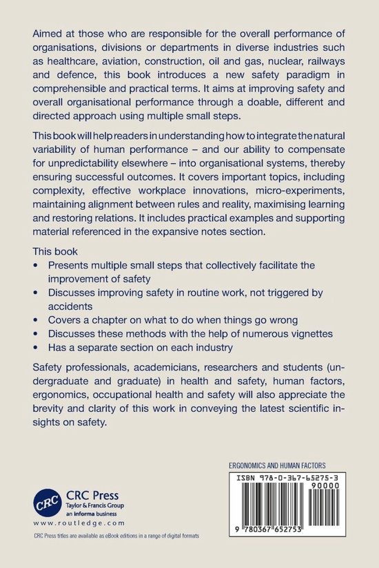 Aimed at those who are responsible for the overall performance of organisations, divisions or departments in diverse industries such as healthcare, aviation, construction, oil and gas, nuclear, railways and defence, this book introduces a new safety paradigm in comprehensible and practical terms. It aims at improving safety and overall organisational performance through a doable, different and directed approach using multiple small steps.