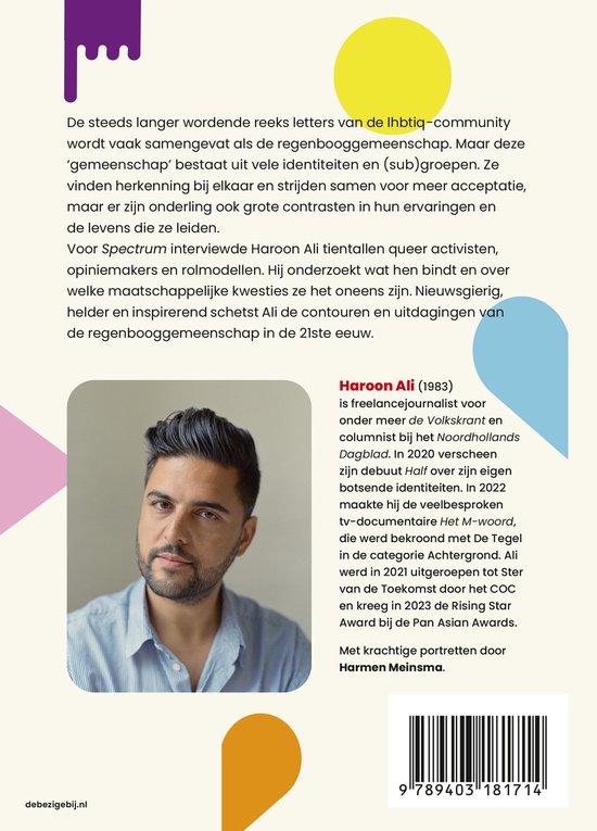 Voor Spectrum interviewde Haroon Ali tientallen queer activisten, opiniemakers en rolmodellen. Hij onderzoekt wat hen bindt en over welke maatschappelijke kwesties ze het oneens zijn. Nieuwsgierig, helder en inspirerend schetst Ali de contouren en uitdagingen van de regenbooggemeenschap in de 21ste eeuw.